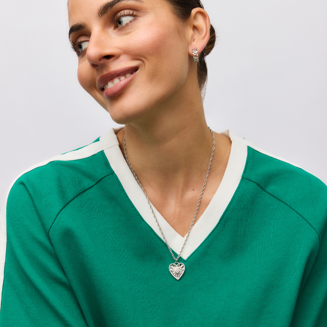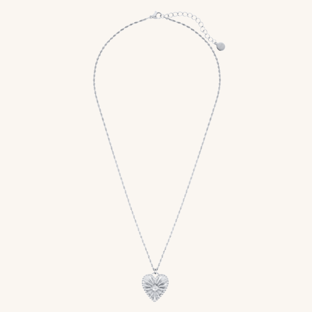 Our bestselling necklace features a vintage style heart pendant with zircon stone detail on twisted chain. Ideal for stacking or wearing solo.