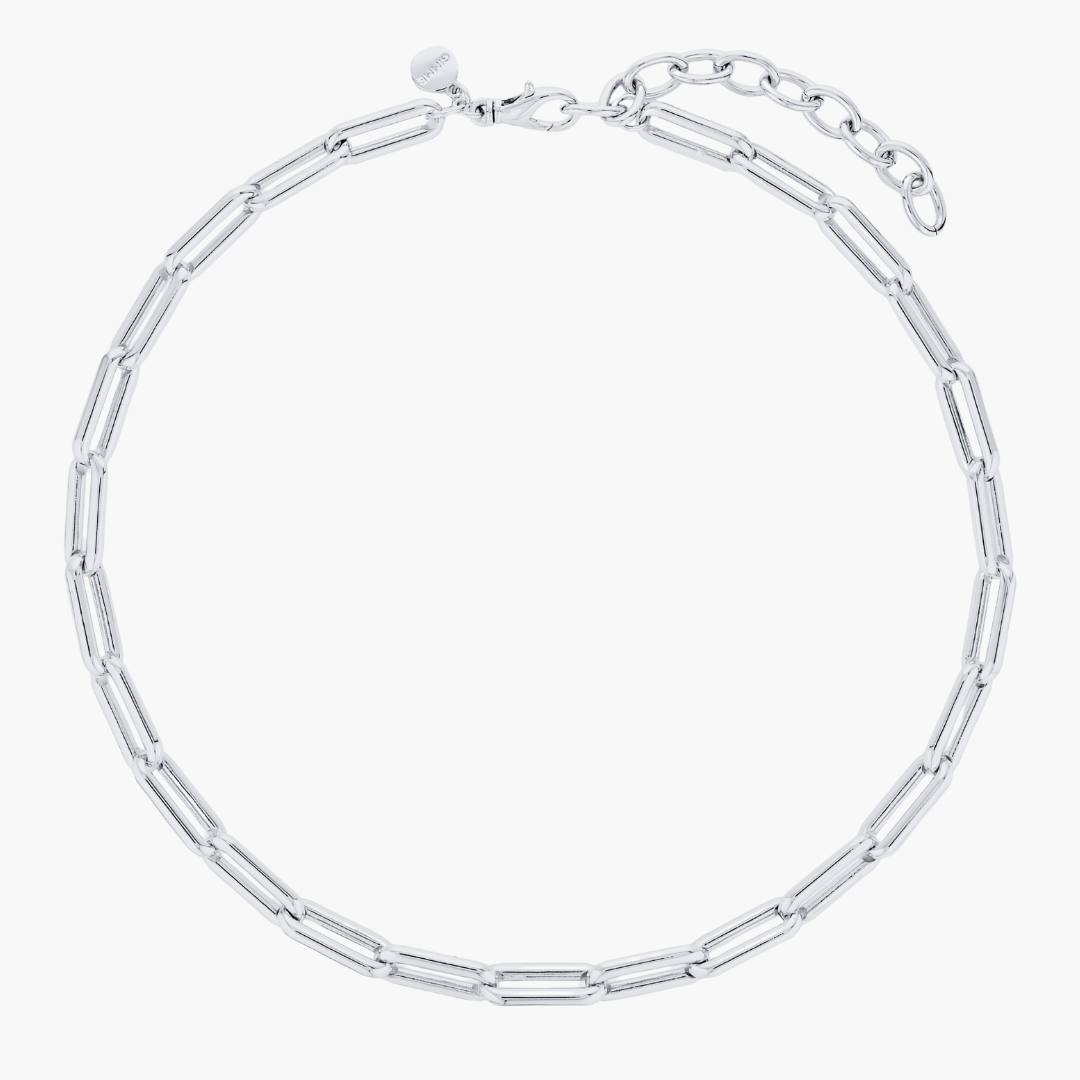 A refined silver paperclip chain crafted with smooth, high-quality links that add clean, effortless polish to your everyday style.