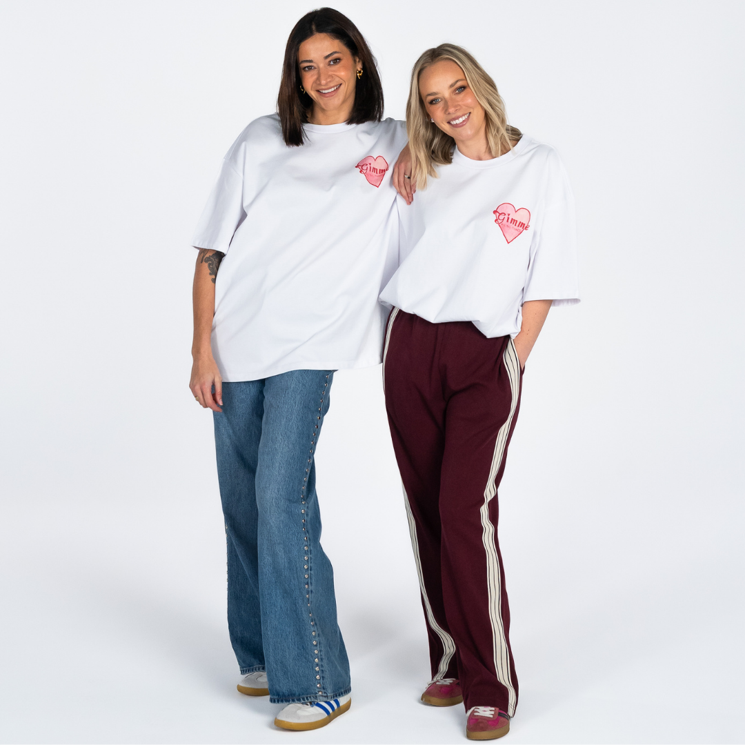 The tee pairs perfectly with tailored trousers, jeans, denim cut-offs, a lace skirt, or cute, colourful trackies.