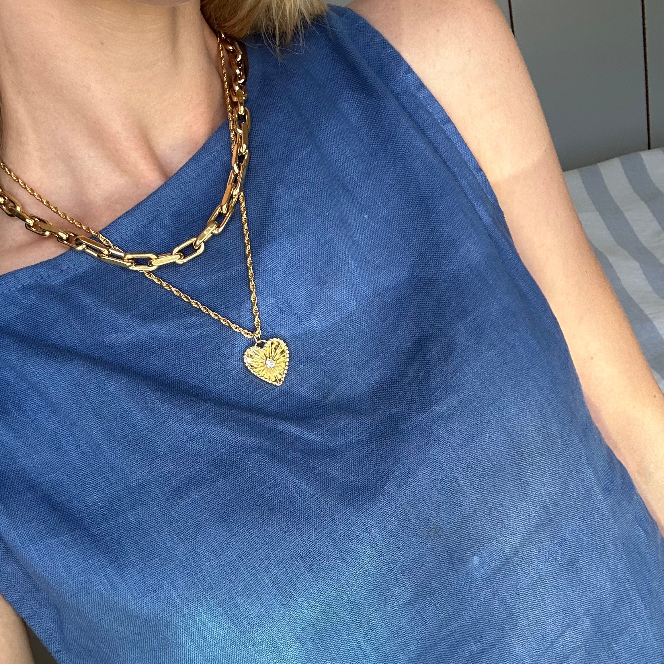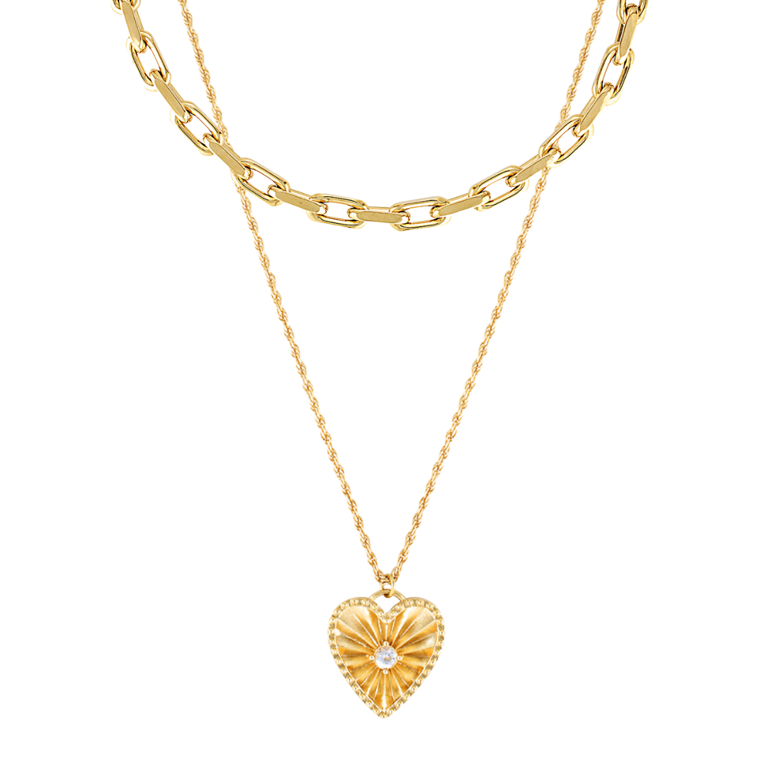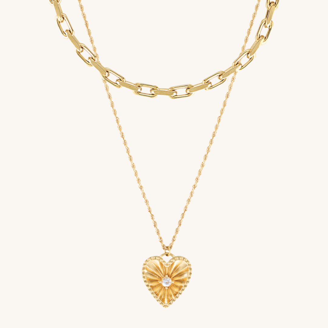 The bundle features our two hugely popular necklace styles, the Chelsea Chunky Chain Necklace and the Sophie Heart Pendant Necklace.