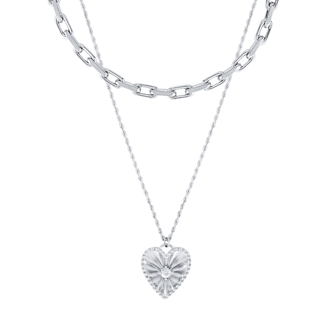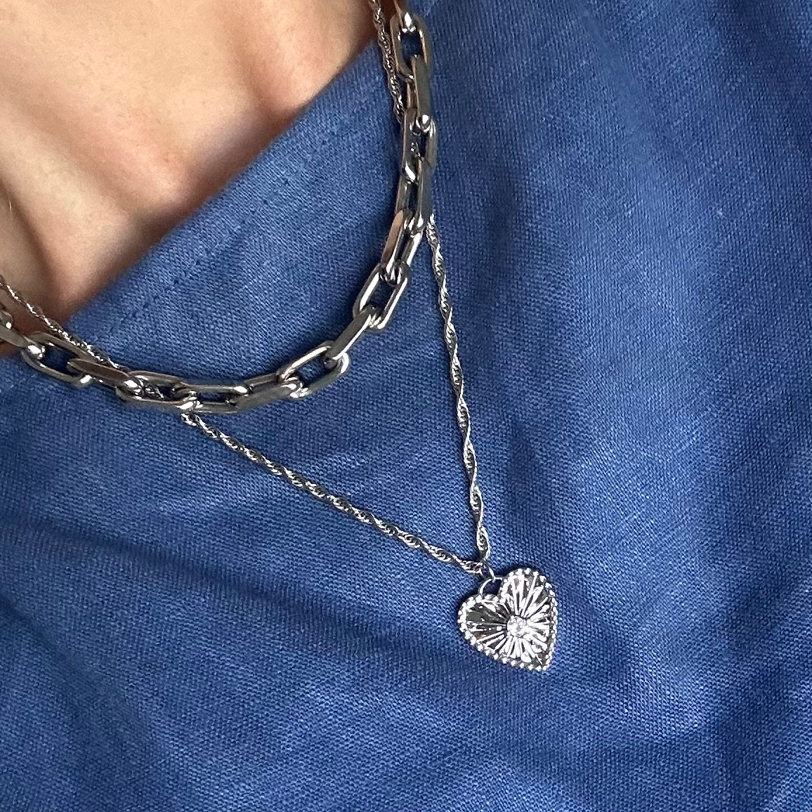 The bundle features our two hugely popular necklace styles, the Chelsea Chunky Chain Necklace and the Sophie Heart Pendant Necklace.
