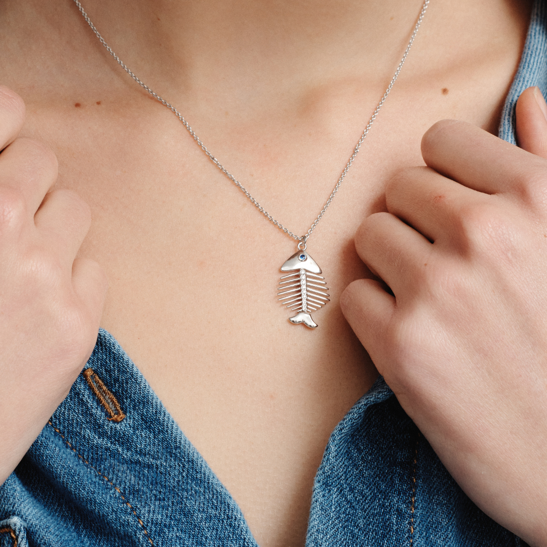 The Pesce Necklace features a stylised, gem-encrusted fish charm, designed to bring just the right amount of edge to your everyday layers. It’s equal parts playful and polished, perfect on it's own or added to your existing necklace stack.