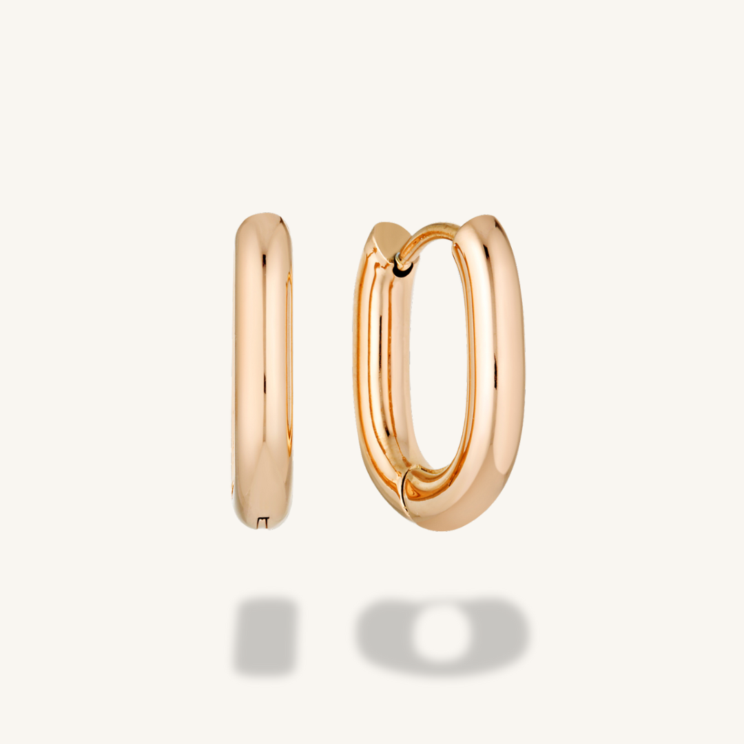 Elevate your everyday style with these sleek oval shaped huggies in Rose Gold.