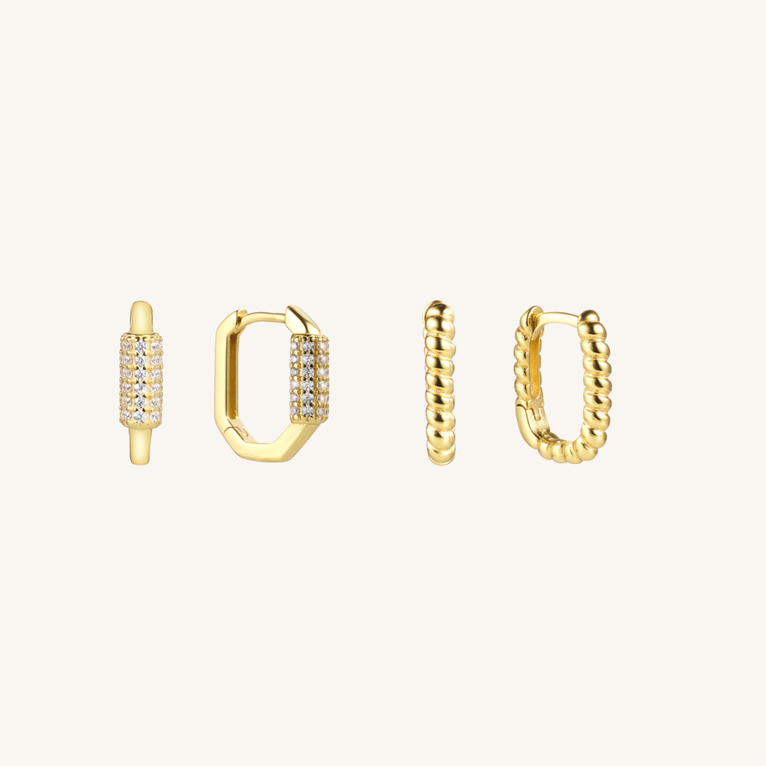 This set includes a pair of our Twisty Huggies & Rhinestone Huggies both in Silver.
