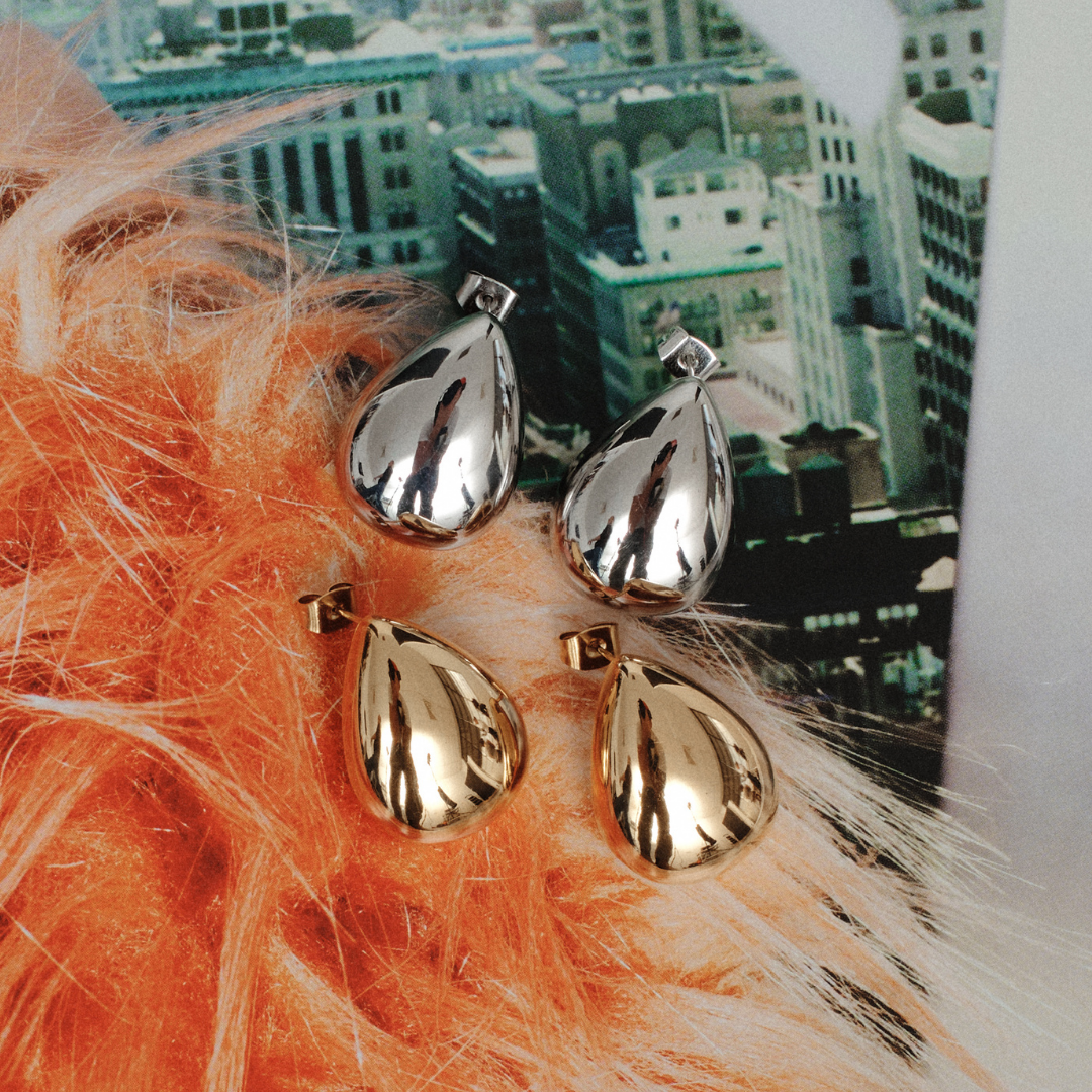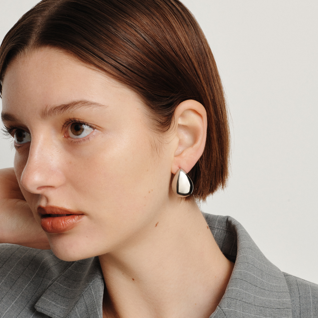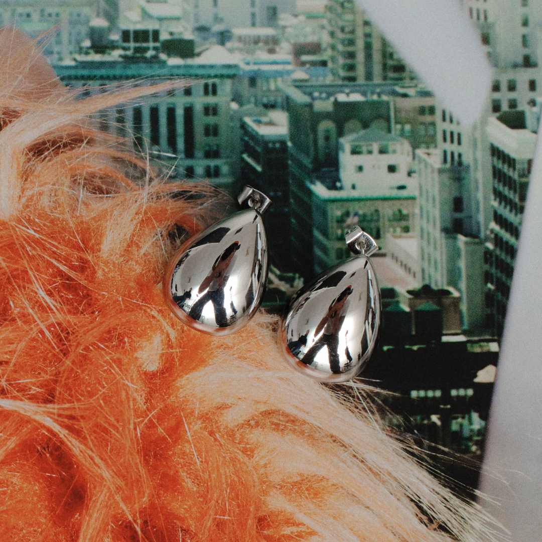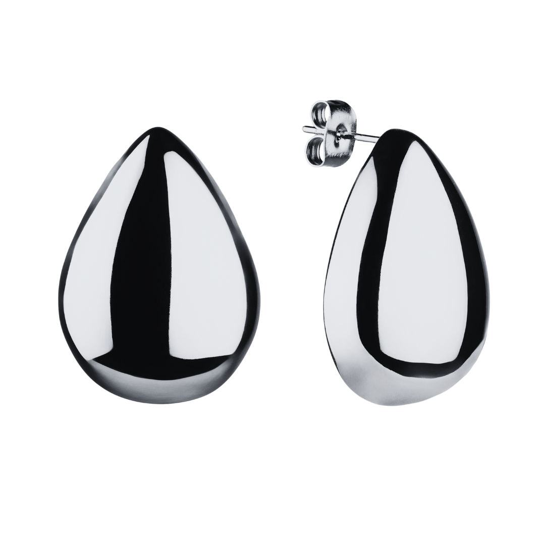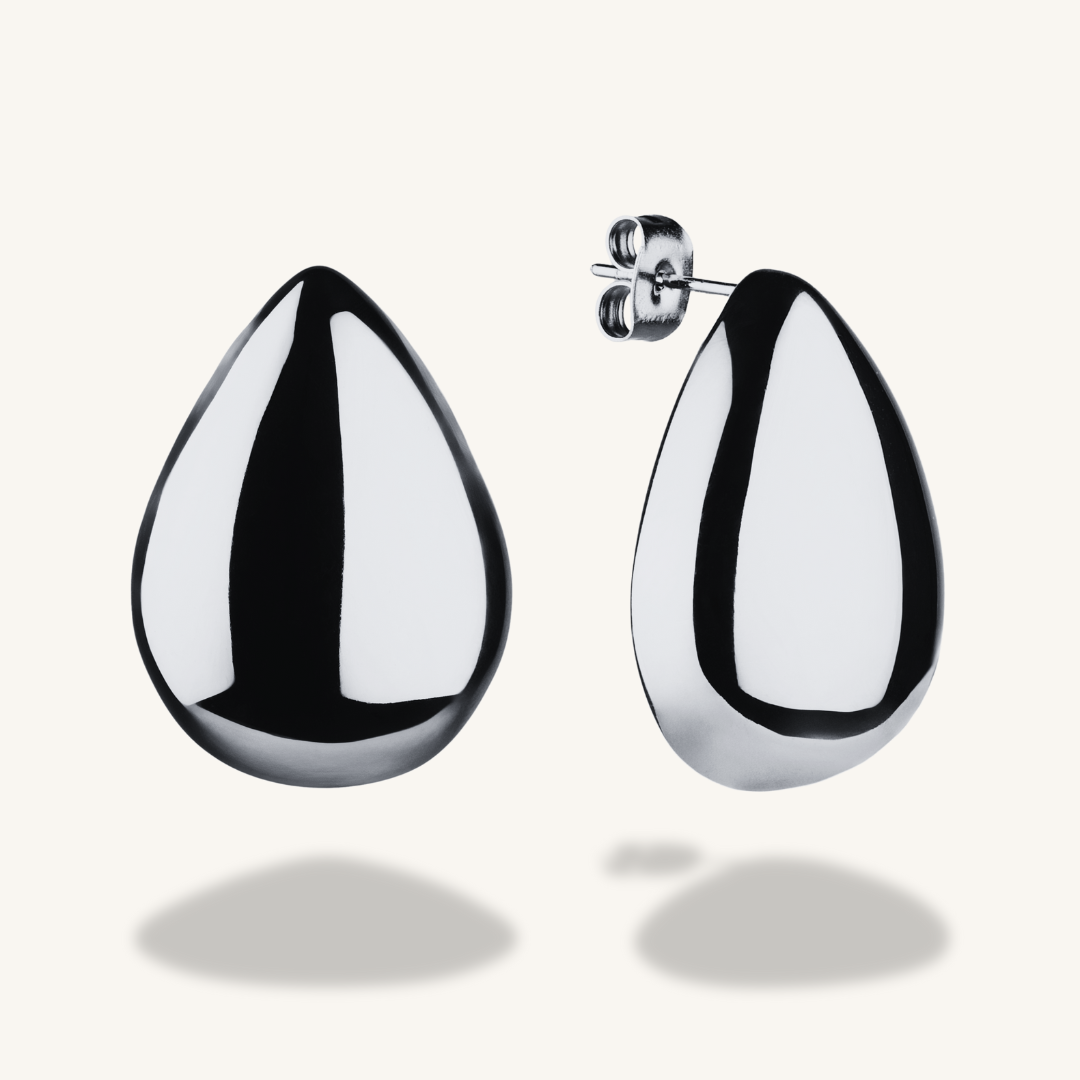 Meet your new go-to silver statement earrings. The teardrop shape is bold yet wearable, with a high-shine finish that catches the light and elevates your outfit in seconds. Consider these your everyday glow-up. Wear them with a slick bun and a simple tank, oversized shirt, or blazer for instant polish.