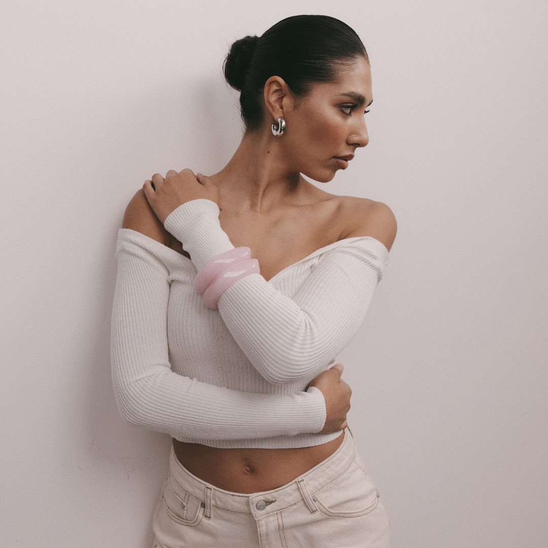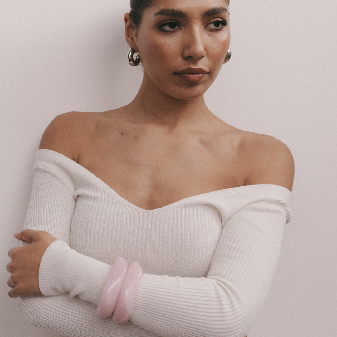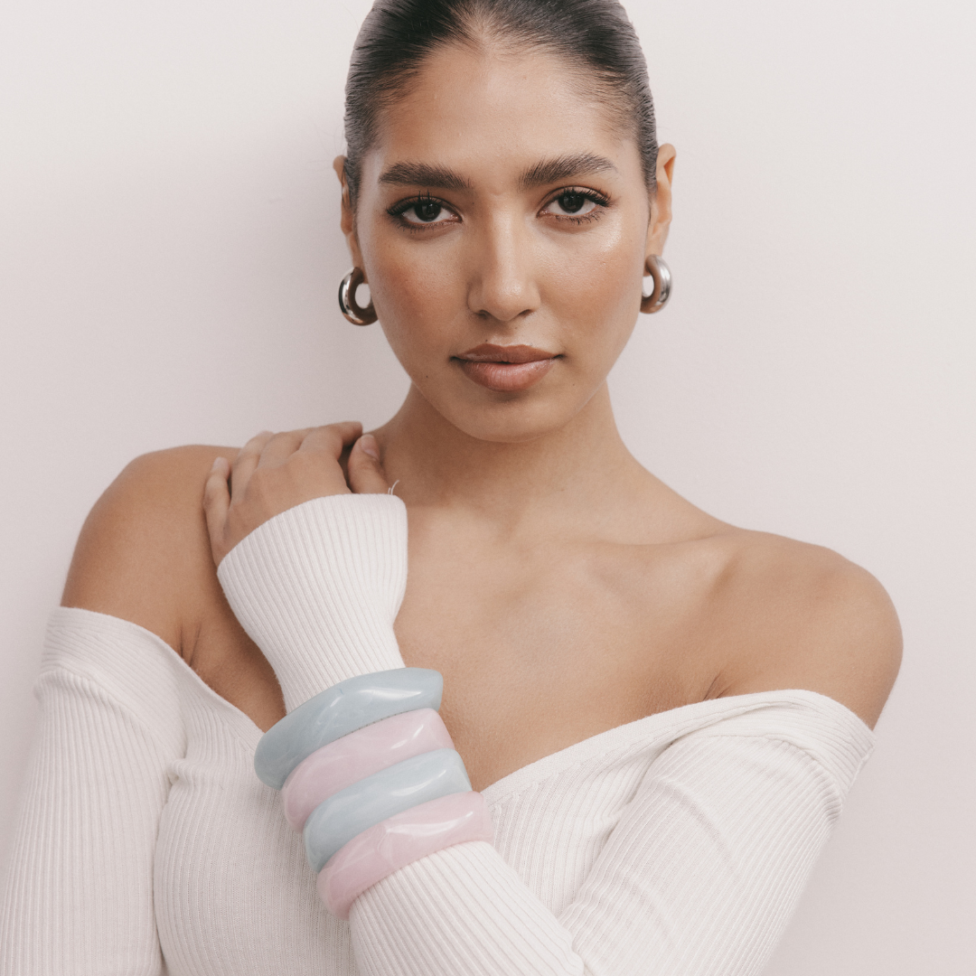 Try it in a stack with our Chunky Resin Bangle in Cream or Gold and Silver Ribbed Bangles.