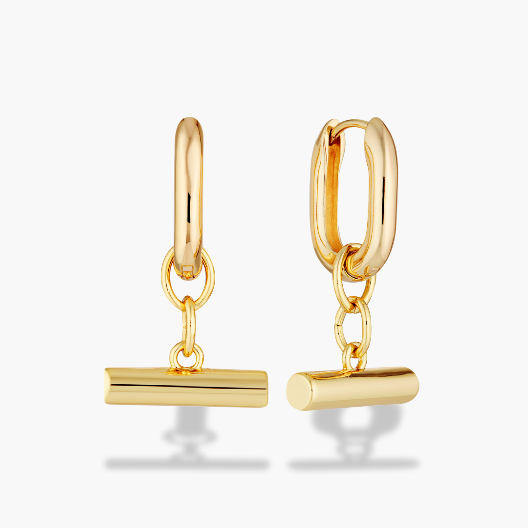 Sculptural gold fob earrings with a minimalist bar drop that feels bold, modern and easy to wear with absolutely everything.